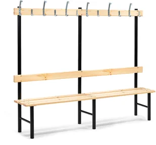 Wieszak z ławką sosnową o długości 2000mm. Pojedyncza ławka z oparciem i szynami oraz hakiem po obu stronach. Lakierowana sosnaGalwanizowane elektrolitycznie hakiMocna i wytrzymałaMocne i solidne ławki do szatni. Idealnie zaoszczędzają miejsce i są idealnym rozwiąniem na umieszczenie w środku pomieszczenia jak i pod ścianą. Zastosuj ławki w szatniach pojedynczo lub stwórz moduły składajace sie z wielu parti- możliwości są nieograniczone.