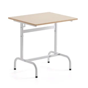 Blat wykonano z laminatu wysokociśnieniowego HPL, co sprawia, że powierzchnia jest wytrzymała i łatwa do wyczyszczenia. Materiał ten jest idealny do szkoły, gdzie potrzeba wytrzymałych mebli odpornych na uszkodzenia.