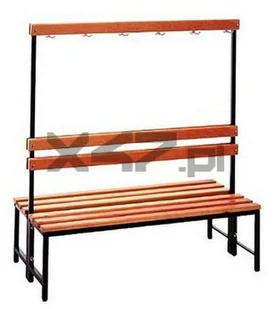 Ławka z wieszakami do szatni pracowniczej - metalowy stelaż, siedzisko z drewna liściastego. Wymiary: 1650 x 1000 x 730 [mm]