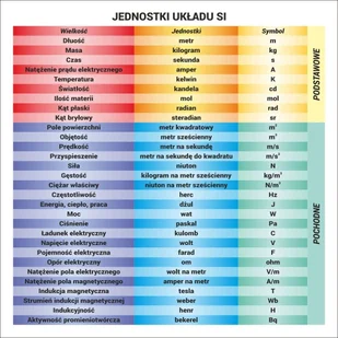 Naklejka ścienna przedstawiająca jednostki układu SI Dodatki w salach lekcyjnych w postaci tablic z ważnymi informacjami są dobrym sposobem na naukę, częste powtarzanie i utrwalanie wiedzy.