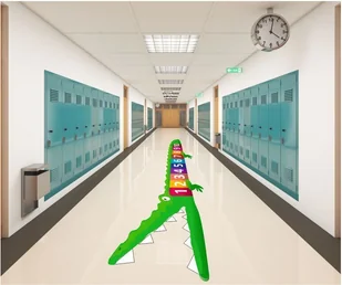 Kolorowy krokodyl czeka, aby nauczyć dzieci liczenia od jednego do dziesięciu! Dzieci mogą swobodnie przeskakiwać po kolorowych polach, na których umieszczone są widoczne, czytelne cyferki. Naklejka przeznaczona jest dla dzieci w wieku przedszkolnym i młodszym szkolnym, czyli w czasie kiedy uczą się podstaw liczenia. Naklejka Krokodyl z cyferkami uprzyjemni i ułatwi tą naukę. Naklejka Krokodyl z cyferkami sprawdzi się świetnie zarówno na korytarzu szkolnym, przedszkolnym jak i w świetlicy czy Sali Zabaw. Może w nią zagrać zarówno jedna osoba jak i kilka czy kilkanaście - i to w różnym wieku.