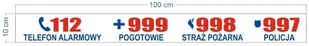 Naklejki drukowane są na winylowej folii samoprzylepnej, a w celu wzmocnienia ich powierzchni pokrywane również płynnym laminatem. Do miejsc o nietypowej fakturze oraz narażonych na szczególnie trudne warunki polecamy bardziej wytrzymałe wersje wyposażone w laminat stały. Wszystkie naklejki z telefonami alarmowymi dostępne w naszej ofercie są odporne na zmywanie. Kolorowe naklejka na schody z numerami telefonów alarmowych. Numery alarmowe warto aby zapamiętał nawet przedszkolak.