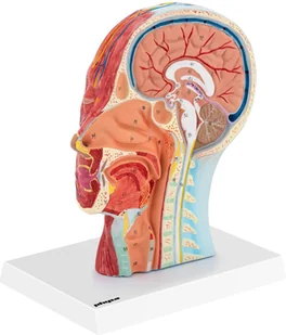 Powierzchnia materiału oraz wykorzystane kolory świetnie oddają strukturę mięśni i tkanek. Całość stabilnie ustawisz na dołączonej podstawce. Wybierz wysokiej jakości model anatomiczny głowy i mózgu marki physa. Sprawdzi się jako pomoc naukowa, a także tematyczna ozdoba gabinetu lekarskiego.
