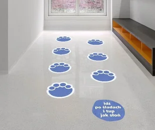 W pomieszczeniach, w których używane jest miękkie obuwie, naklejka służyć może nawet kilka lat.