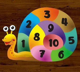 Kolorowy, zawsze uśmiechnięty ślimak czeka, aby nauczyć dzieci cyferek! Dzieci mogą swobodnie przeskakiwać po kolorowych polach, na których umieszczone są widoczne, czytelne cyfry od 1 do 10. Naklejka przeznaczona jest dla dzieci w wieku przedszkolnym i młodszym szkolnym, czyli w czasie kiedy uczą się pisać i czytać. Naklejka Ślimak z cyferkami uprzyjemni i ułatwi tą naukę. Ślimak z cyferkami sprawdzi się świetnie zarówno na korytarzu szkolnym, przedszkolnym jak i w świetlicy czy Sali Zabaw. Może w nią zagrać zarówno jedna osoba jak i kilka czy kilkanaście - i to w różnym wieku.