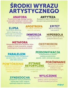 Naklejka przedstawiająca podstawowe środki wyrazu artystycznego. Naklejka jest przejrzysta, stanowi pomoc dydaktyczną, jak i ozdobę sali lekcyjnej. Można ją w każdym momencie odkleić i umieścić w innym miejscu. Dzięki specjalnej technice naniesienia kleju (w postaci punktów) możliwe jest przyklejenie produktu bez powstających bąbli. Folia, która została do niej zastosowana ma klej Easy Dot.