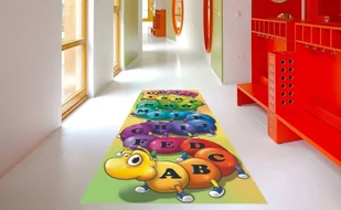 Naklejka Podłogowa Alfabet Stonoga to nowoczesny element wystroju przedszkoli lub szkolnych świetlic. Może być przyklejona nawet na korytarzu, gdzie z pewnością będzie intensywnie używana - odpowiednio dobrane materiały i antypoślizgowy laminat sprawiają, że naklejka jest wytrzymała, bezpieczna i zachowuje dobry wygląd przez wiele lat. Oprócz zabawy kolorowa stonoga spełnia także funkcje edukacyjne. Kolorowe, czytelne literki od A do Z są umieszczone na barwnym tle stonogi. Pozwolą one dzieciom poprzez zabawę, zapamiętać litery alfabetu i ich kolejność.