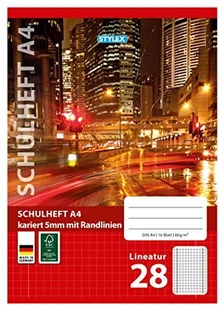 Stylex Zeszyt szkolny stylex 29828-P25 DIN A4, 16 kartek, linie 28 5 MM zdejmowany kaptur krawędzi, 25 sztuk w opakowaniu, w kratkę