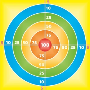 Zadaniem graczy jest umieszczanie woreczka, kostki bądź innego przedmiotu jak najbliżej środka tarczy. Gra przeznaczona jest dla jednego, lub większej liczby graczy w zależności od sytuacji dzieci mogą wymyślać nowe reguły gry. Naklejki w naszej ofercie są wykonane z wytrzymałych i odpornych na ścieranie materiałów. Mogą być wykorzystane w przedszkolach, świetlicach czy mieszkaniach. Gra wspomaga koncentrację, uczy cierpliwości i rozwija motorykę dużą oraz koordynację oko-ręka.