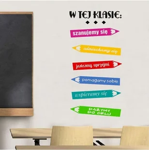 Naklejka na drzwi sali lekcyjnej do szkoły ale również na ścianę czy inną powierzchnię gładką. Każda kredka jest w innym kolorze i przedstawia inną treść. Dostajecie Państwo 7 arkuszy z naklejkami- każdy arkusz z pojedynczą kredką w innym kolorze. Wzór jest wycinany po kształcie, nie ma bezbarwnego tła, ani bezbarwnych brzegów. Na całą powierzchnię wzoru naklejona jest folia transportowa ułatwiająca naklejenie go w całości, jednak można bez trudu rozciąć elementy nożyczkami i naklejać według własnej kompozycji.