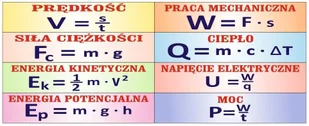 Wzorów fizycznych dzieci uczą się już w podstawówce i powtarzają je aż do ukończenia szkoły średniej lub nawet na studiach. Codziennie utrwalane informacje na długo zostaną w pamięci. Naklejki ze wzorami fizycznymi umieszczone na szkolnych schodach to wspaniała pomoc dla uczniów w zapamiętywaniu przydatnych informacji. W komplecie jest 8 naklejek, 50 x 10 cm każda. Standardowo naklejki drukowane są na ekonomicznej folii zabezpieczonej płynnym laminatem.