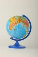 Mały biurkowy globus z wyrazistą mapą fizyczna. Plastikowa podstawa i meridian świetnie współgrają z kolorystyką mapy. Globus doskonale sprawdzi się jako podręczna, niezbędna pomoc szkolna, ale równie dobrze postawiony na biurku lub na półce może stanowić interesujący element dekoracji dowolnego pomieszczenia.