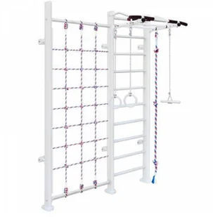 biały WYPOSAŻENIE drewniana drabinka gimnastyczna drążek nieprzesuwny słupek przyścienny kółka gimnastyczne lina gimnastyczna trapez gimnastyczny Bogate wyposażenie sprawia, że drabinka do ćwiczeń zainteresuje każdego użytkownika. Biała ta drewniana kolorystyki dobrze pasują do współczesnego wnętrza. Dodatkowe wyposażenie dostępne w ofercie służy rozbudowaniu drabinki gimnastycznej w nowe, ciekawe urządzenia do ćwiczeń. W celu zapewnienia bezpieczeństwa podczas ćwiczeń zalecany jest zakup materaca gimnastycznego .