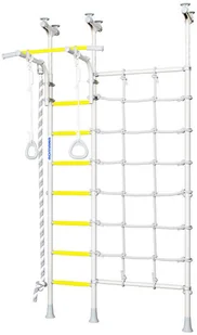 Merkury 3 drabinka gimnastyczna Najważniejsze cechy produktu: posiada certyfikat Unii Europejskiej, atest TÜV Nord testowana fabrycznie obciążeniem 200kg trwałe materiały: metalowa konstrukcja + proszkowa farba ogumione antypoślizgowe szczeble z masującymi wypustkami rozmaite akcesoria gimnastyczne dla dzieci w zestawie estetyczny wygląd, dopracowana w szczegółach konstrukcja Dane Techniczne: sposób montażu: rozporowy wysokość zestawu: