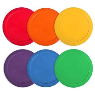 ZNACZNIK NA PARKIET OKRĄGŁY NO10 - 1 kpl. (6 szt.) VFMN-FLCIS6WB Zestaw płaskich znaczników pola doskonałe do oznaczania miejsc na sali czy w siłowni. Spód wykonany z materiału zapobiegającemu przesunięciu znacznika na podłodze, wierzch matowy, nie wprawia w poślizg. Zestaw: 6 szt. koloroweMateriał: PVC