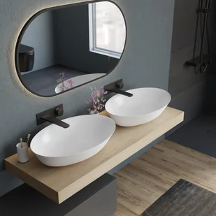 NT8531 to owalna umywalka nablatowa. Umywalka ma szerokość 60 cm i można ją łatwo zamontować na szafce podumywalkowej lub na eleganckim blacie. Umywalka nablatowa jest dostępna w kolorach biały mat i czarny/biały mat.