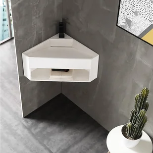 Narożna umywalka TWG70 z odlewu mineralnego Solid Stone - Matowa biel - Z praktycznym schowkiem