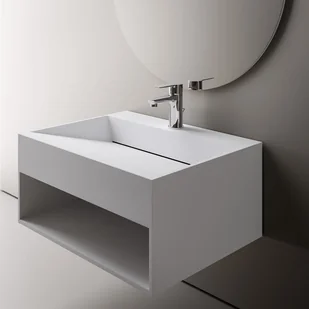 Umywalka z konglomeratu Bernstein TWG71 o nowoczesnym designie i praktycznym miejscu do przechowywania produktów i ręczników nada Twojej łazience zupełnie nowy wygląd.