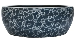 Artystyczny akcent w Twojej łazience: wyróżniające się oryginalne zdobienia dodają unikalnego charakteru zewnętrzna niebieska powierzchnia wprowadza relaksujący, przyjemny nastrój czarne wnętrze tworzy elegancki kontrast i ułatwia utrzymanie czystości okrągły kształt zapewnia harmonijny, nowoczesny wygląd idealna do stylowych i designerskich aranżacji łazienkowych Umywalka to prawdziwe dzieło sztuki: najwyższej jakości ceramika, wyróżniająca się wysoką wytrzymałością, odpornością na działanie wysokich temperatur, oraz działanie czynników chemicznych. Ceramika porowata wykazuje się wysoką wytrzymałością na poziomie 25-1000 MPa. Materiał ten nie ulega zniszczeniu przy kontakcie z wodą, a dzięki szkliwionej powierzchni charakteryzuje się wysoką twardością i odpornością na zarysowania.