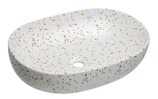 Delikatne, zaokrąglone linie umywalki tworzą elegancką, subtelną formę, która sprawdzi się w każdej łazience. Umywalka wykonana jest z trwałej ceramiki, odpornej na zarysowania i łatwej w utrzymaniu czystości, co gwarantuje niezawodność na długie lata. Umywalka przeznaczona jest do montażu na blacie, dzięki czemu łatwo dopasujesz ją do każdej łazienkowej aranżacji, zachowując przy tym przestrzeń użytkową. Najwyższej jakości materiały: Najwyższej jakości ceramika wyróżniająca się wysoką wytrzymałością, odpornością na działanie wysokich temperatur oraz czynników chemicznych.