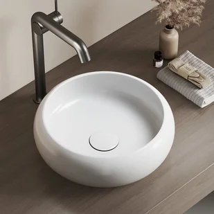 Elegancki design: Ta okrągła umywalka charakteryzuje się zaokrąglonymi liniami i nowoczesną stylistyką. Jej gładkie, delikatne krawędzie zapewniają bezpieczne użytkowanie, harmonijnie dopasowując się do różnych stylów łazienkowych