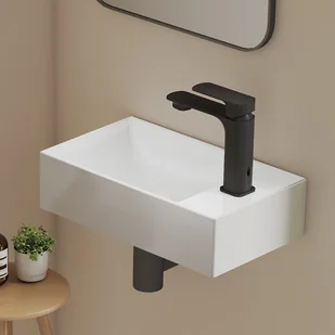 Kompaktowy rozmiar: Mierząca 38 × 22 × 10 cm umywalka posiada otwór na baterię. Mała zintegrowana półka do przechowywania mydła i akcesoriów, optymalizująca przestrzeń, idealna do małych pomieszczeń