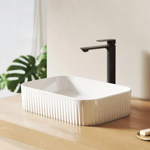 Wysokiej jakości ceramika: Umywalka nablatowa wykonana jest z ceramiki wypalanej w wysokiej temperaturze i pokryta wysokogatunkowym szkliwem, które ułatwia czyszczenie oraz zapewnia odporność na plamy, odbarwienia i zarysowania.