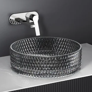 Elegancki i oryginalny design: Ta cylindryczna umywalka z przezroczystego szkła łączy w sobie prostotę i wyrafinowanie. Jej gładkie, schludne krawędzie zapewniają bezpieczne użytkowanie, a teksturowana powierzchnia dodaje łazience wyjątkowej elegancji