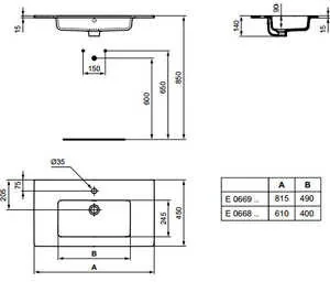 Ideal Standard Tempo - Umywalka meblowa 610x450x140 mm, z przelewem, z otworem na baterię, biała E066801