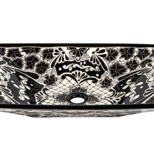 Meksykańska ceramiczna umywalka nablatowa z reliefem Serena Prima – prostokątna umywalka łazienkowa 55 x 36 x 11 cm | Umywalka z motywami Talavera