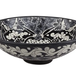 Ręcznie wykonana ceramiczna umywalka nablatowa – do użytku wewnętrznego w łazienkach Ręcznie wykonana, z wykorzystaniem tradycyjnych technik, każda sztuka jest indywidualnie zdobiona, a wzory nakładane są ręcznie na całą powierzchnię, zarówno wewnątrz, jak i na zewnątrz. Dzięki smukłemu, lekko wygiętemu kształtowi, umywalka ta nadaje rzeźbiarski charakter i wyrafinowaną estetykę każdemu wnętrzu. Jej oryginalny design idealnie pasuje do wnętrz w stylu boho, etnicznym lub naturalnym. Najważniejsze cechy Ręcznie wykonana dekoracja Wzory tworzone ręcznie, zgodnie z tradycją Wykończenia widoczne ze wszystkich stron Unikalny wzór dekoracyjny, który tworzy indywidualną atmosferę Wyrazisty element dekoracyjny w łazience Wysokiej jakości materiały Wysokiej jakości szkliwiona ceramika Odporna na mikrozarysowania, wilgoć i środki czystości Kolory pozostają trwałe dzięki ochronnej glazurze Łatwa w utrzymaniu Nieporowata, higieniczna powierzchnia Nie wymaga specjalnych środków czyszczących Proste czyszczenie czystą wodą z delikatnym mydłem Funkcjonalna konstrukcja Wystarczająca pojemność dla komfortowego użytkowania Łatwy montaż na umywalce lub blacie Wyłącznie do użytku wewnętrznego Średnica otworu odpływowego: 4,5 cm Montaż: