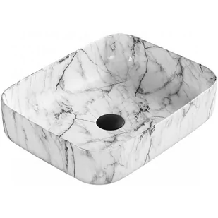 Dane techniczne: Rozmiar: 50x39x13 cm Typ: Nablatowa Kolor: Biały kamień Otwór przelewowy: Nie Otwór na baterie: Nie Materiał: Ceramika sanitarna Każda umywalka posiada unikalny wzór naturalnego kamienia