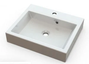 - Dłuższy bok: 50 cm - Krótszy bok: 42 cm - Typ: klasyczna, nablatowa - Kształt: prostokątna - Otwór na baterie: tak - Kolor: biały - Materiał: Mineralny - Powłoka ochronna: nie - Przelew: tak