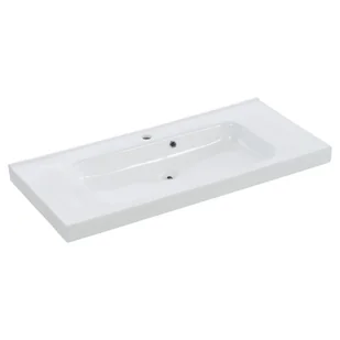 Umywalka Remix 106 x 48. 5 wykonana z ceramiki która jest łatwa w pielęgnacji trwała i funkcjonalna. Powłoka szkliwa którym pokryta jest umywalka, to warstwa wysoce odporna na zarysowania, wysoką temperaturę i osadzanie się kamienia, co gwarantuje dużą trwałość produktu. Umywalka jest kompatybilna z meblami serii Remix. Umywalka Remix posiada otwór na baterie oraz otwór przelewowy.