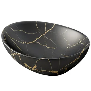 Nowoczesny wygląd czarny mat + marmurowe żyłki Wysokiej jakości ceramika trwała i łatwa w czyszczeniu Kompaktowy rozmiar idealna do każdej łazienki Uniwersalny design pasuje do różnych stylów wnętrz Specyfikacja produktu: Typ: umywalka nablatowa Materiał: ceramika sanitarna Kolor: czarny mat z marmurowymi żyłkami Kształt: owalny Wymiary:
