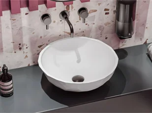 Umywalka w formie misy z lanego marmuru SAPFIRE to nowość 2022 roku! Oryginalna półkula, z zewnątrz szlifowana jak klejnot, będzie wspaniałą ozdobą łazienki....