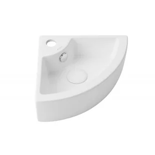 Umywalka ścienna uptrend cherry 31x49 biały połysk str4299 to model przeznaczony do montażu w narożniku, który doskonale sprawdzi się w małych bądź nieproporcjonalnych łazienkach oraz toaletach. Prezentowana umywalka ścienna cherry producenta uptrend przybiera trójkątny kształt o wymiarach sięgających 49 cm szerokości, 31 cm głębokości oraz 12,5 cm wysokości. Uniwersalny odcień bieli oraz połyskujące i gładkie wykończenie powierzchni zapewniają łatwość utrzymania umywalki w nieskazitelnej czyst