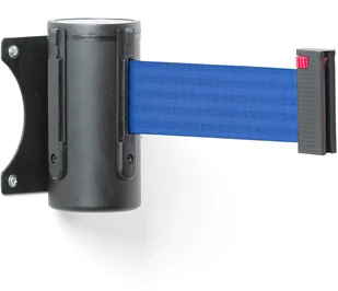 Uchwyt ścienny z taśmą odgradzającą do tworzenia stałych barier. Zawiera uchwyt do zamontowania dodatkowej taśmy. Taśmę można rownież zamontować do słupka.