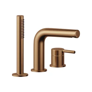 Bateria wannowa excellent pi 3-otworowa miedź szczotkowana arex. 1234cb to propozycja doskonale komponująca się z nowoczesnymi łazienkami, przeznaczona do montażu na brzegu wanny zwraca uwagę nowoczesnym wzornictwem oraz praktycznymi rozwiązaniami. W zestawie znajduje się wylewka prysznicowa, która pełni również rolę przełącznika, 1-funkcyjna słuchawka prysznicowa oraz precyzyjny mieszacz z ergonomicznym uchwytem w formie patyka, pozwalający na płynną regulację strumienia i temperatury wody. Bat