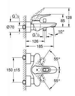 Bateria wannowa jednouchwytowa montaż ścienny głowica ceramiczna 35 mm z GROHE SilkMovereg z ogranicznikiem temperatury regulowany ogranicznik strumienia przepływu automatyczny przełącznik wannaprysznic perlator zakryte przyłącza S metalowa rozeta ścienna wyjście prysznica 12quot ze zintegrowanym zaworem zwrotnym metalowa dźwignia powłoka chromowa z GROHE StarLightreg zabezpieczenie przed przepływem zwrotnym