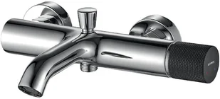 Bateria wannowa bez zestawu natryskowego chrom/czarna PEROS Materiał wykonania: mosiądz Typ uchwytu: jednouchwytowa Sposób montażu: ścienny Rodzaj głowicy: ceramiczna Średnica głowicy: