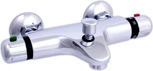 Bateria wannowa termostatyczna chrom MER ROUGE Montaż: 2-uchwytowa Sposób montażu: ścienna Głowica: termostatyczna VERNET Rozmiar aeratora: 24mm Materiał: