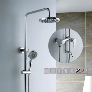Regulowana 83-123cm Średnica Deszczownicy: 20 cm Słuchawka: 5-cio strumieniowa Średnica 10 cm Zawór kierunkowy: przełącznik między deszczownicą a słuchawką Bateria: Wannowo natryskowa z głowicą ceramiczną W komplecie: