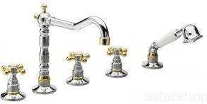 ANTEA 5-otworowa bateria wannowa z wylewką retro, chrom/złoto