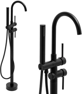 Mechaniczna bateria wannowo-prysznicowa, wolnostojąca, jednouchwytowa z obrotową, sztywną wylewką z przełącznikiem. Zarówno 35 mm głowica ceramiczna jak i perlator oszczędzają nawet do 40% wody. Zestaw zawiera 2 wysokiej jakości wężyki w oplocie ze stali nierdzewnej o długości 85 cm z przyłączem 1/2 cala, 1 wąż pleciony prysznicowy 150 cm F 1/2 oraz komplet akcesoriów do montażu baterii. Design baterii został podporządkowany trendom na rok 2020 - prezentuje się niezwykle elegancko i idealnie pasuje do nowocześnie urządzonej łazienki.