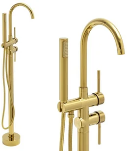 Bateria wannowa podłogowa złota zestaw prysznicowy