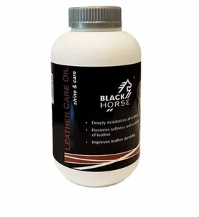 Olej do pielęgnacji wyrobów rymarskich przeznaczony jest w szczególności do pielęgnacji wyrobów nowych lub mocno wysuszonych i dawno nie konserwowanych. Dzięki wysokiej zawartości olejów mineralnych, olejku makadamia preparat Black Horse uelastycznia i odżywia skórę, pozostawiając na jej powierzchni warstwę ochronną uniemożliwiającą przenikaniu wody. Przywraca skórze miękkość i elastyczność, poprawia trwałość skóry. Stosowanie: Olej nakładamy równomiernie na wcześniej wyczyszczoną powierzchnię.
