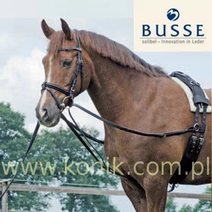 Wykonane z dobrej jakości skóry.Jeden pasek prowadzący do popręgu zakończony pierścieniem do którego wpięte są dwa regulowane pasy.Nierdzewne sprzączki.Kolor czarny...
