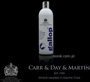 Szampon usuwający plamy STAIN REMOVING - CARR&DAY&MARTINNowa ulepszona formuła. Szampon skutecznie usuwający uporczywe plamy oraz wrośnięty brud. Idealny dla koni siwych lub o jasnej maści oraz do czyszczenia zabrudzonych kolan i stawów skokowych. Extra gęsta formuła umożliwia łatwą i bezpośrednią aplikację szamponu. Sposób użycia:
