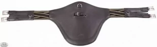 Ekskluzywny popręg skokowy tzw popręg z fartuchem oferujący maksimum bezpieczeństwa przy pełnej swobodzie ruchów. Wyposażony w fartuch chroniący brzuch konia przed uderzeniem podkowami, hacelami czy kopytami w trakcie skoku. Dodatkowe kółko na środku popręgu ułatwia użycie wytoku lub napierśnika. Zakończony z dwóch stron elastycznymi gumami. Kolory: czarny, brązowy, londonRozmiary: